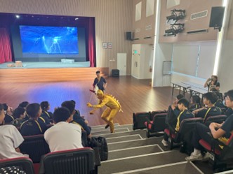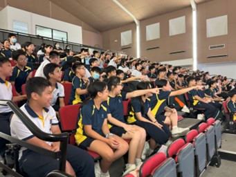 On 27 March 2025, the Secondary 1 students from Hougang Secondary School had the opportunity to watch the engaging stage play Zhou Chu and the Three Monsters, adapted from a historical story set in the Jin Dynasty. This learning experience, part of the Cultural Performance Exposure Scheme (CPES) by the Committee to Promote Chinese Language Learning (CPCLL), aims to expose students to Chinese dramas and Chinese language-related performances by local or overseas arts groups. Additionally, we seeks to foster students’ interest in their cultural heritage and cultivate future Hougang Secondary students who are morally grounded, purposeful, and capable of achieving their goals.