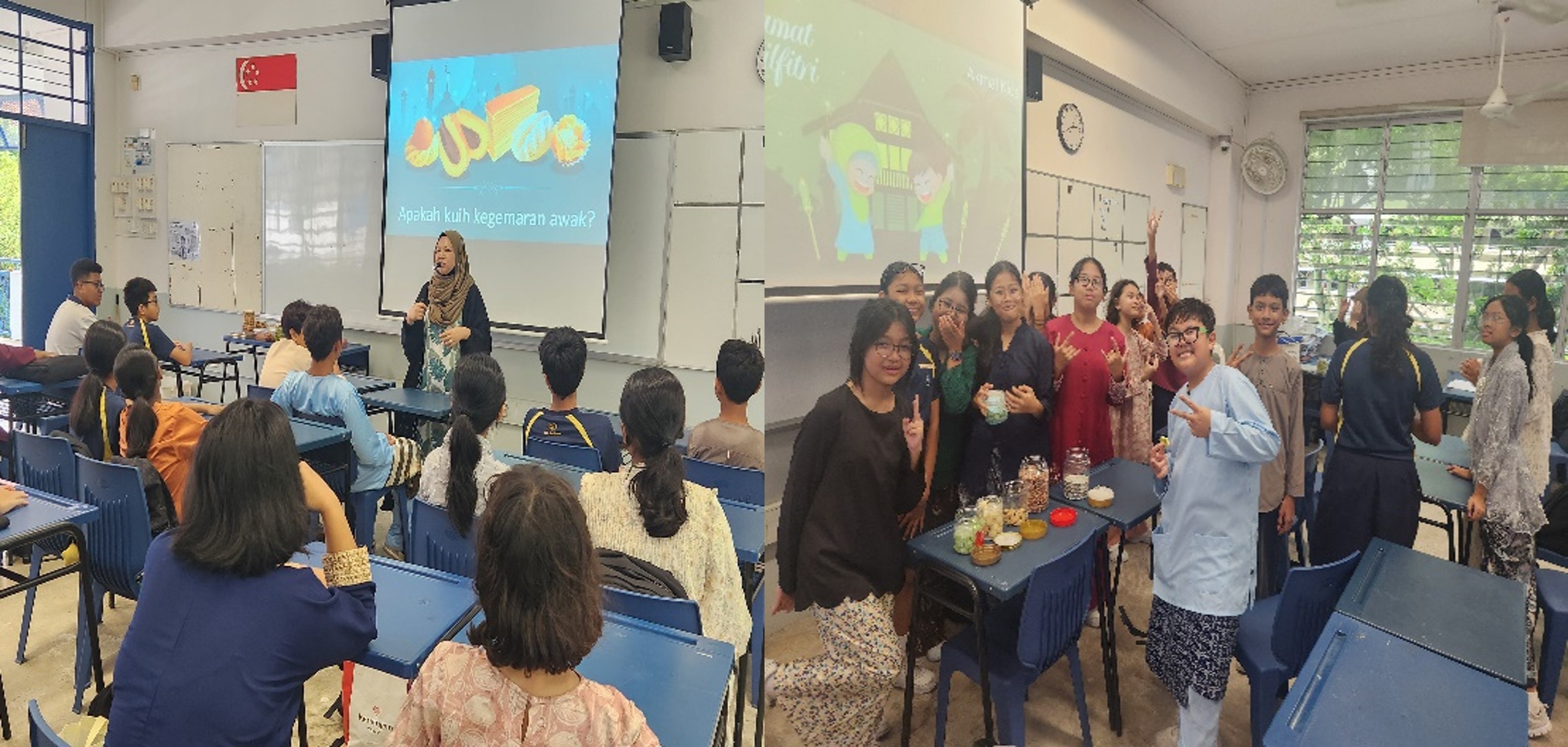Students also had the opportunity to immerse themselves in festive cultural experiences by putting on traditional baju kurung and enjoying a variety of traditional Malay kuehs and delicacies during the mini Hari Raya celebrations in class. Through this hands-on experience, they gained a deeper understanding of the customs and practices observed during Hari Raya, appreciating the values of togetherness, gratitude, and respect that are central to the celebration.
